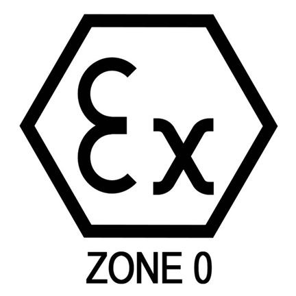 Zone 0 = veilig te gebruiken in gebieden waar explosieve atmosferen continu aanwezig kunnen zijn.