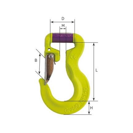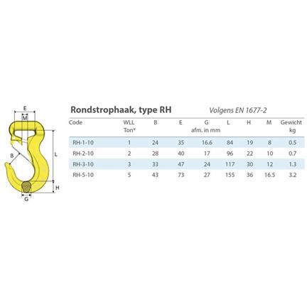 De Rondstrophaak wordt standaard geleverd met een blokkeerpen. Door de smalle opening kan de haak ook zonder blokkeerpen veilig gebruikt worden. Dit maakt de RH-haak een veelzijdige en betrouwbare keuze voor elke hijstoepassing.